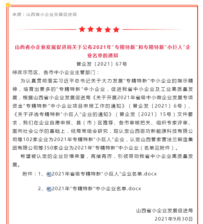 近日,山西省小企业发展促进局对外公布了2021年“专精特新”和专精特新“小巨人”企业名单,山西国源煤层气综合利用工程技术股份有限公司凭借专业的千米钻孔设计,专业的钻进工艺和设备研发改进技术,精细稳定的施工组织管理以及持续的创新能力,荣获山西省2021年专精特新“小巨人“企业和“专精特新“中小企业荣誉称号,使得国源公司的技术影响力得到了进一步提升。