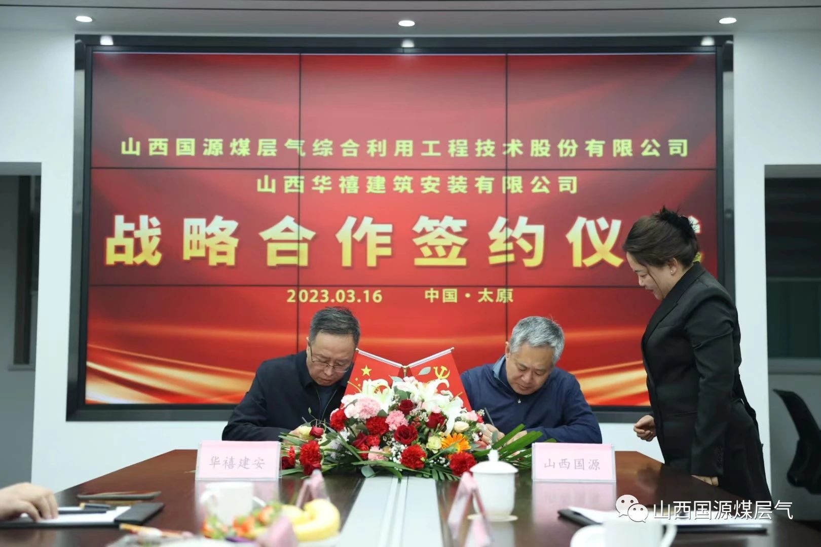 3月16日,山西国源煤层气综合利用工程技术股份有限公司(以下简称“山西国源”)与山西华禧建筑安装有限公司(以下简称“华禧建安”)全面战略合作协议签约仪式在山西国源总部举行。山西国源董事长李恒忠,副总经理冯天祥,市场部副经理温雅丽,华禧建安党委书记、董事长石贵锁,总经理王大勇,副经理邓文鑫,副经理任国锐出席签约仪式。