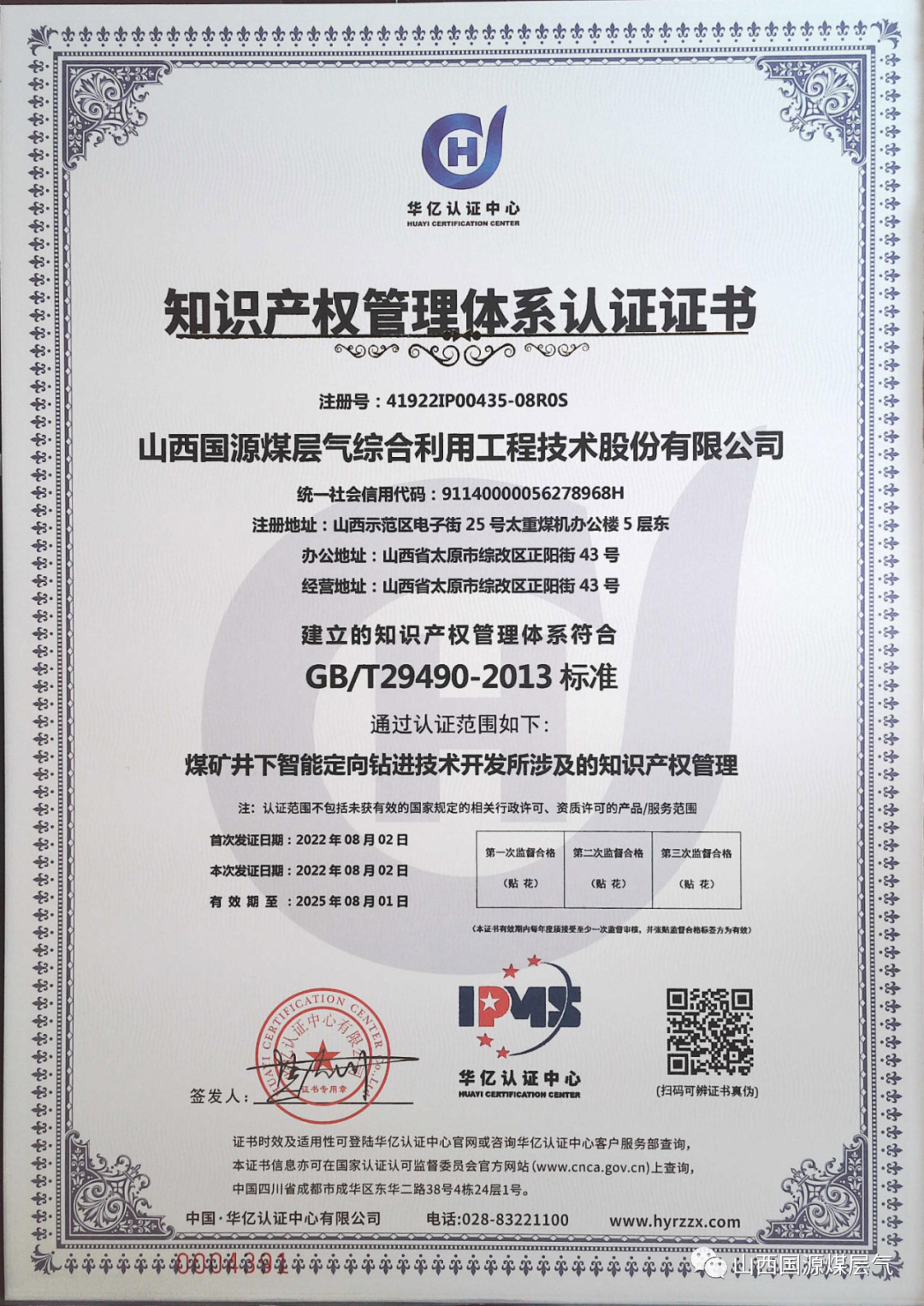 近日,山西国源煤层气综合利用工程技术股份有限公司正式通过“知识产权管理体系认证”并获得证书,这标志着国源公司知识产权管理工作步入标准化、规范化、制度化建设的新台阶。